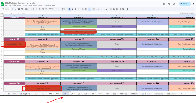- Always start with the Marketing Calendar