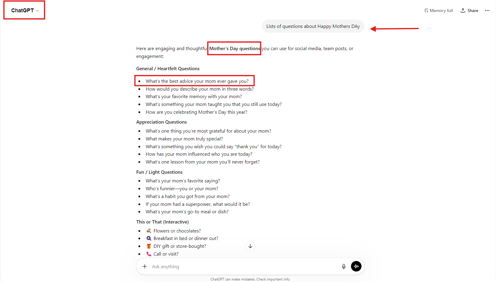 “Give me 10 engaging social media question ideas for [Holiday Name]. Make them fun, emotional, and highly engaging for an audience. Include emojis.”